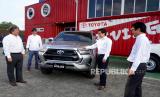 Presiden Direktur PT Toyota-Astra Motor (TAM) Susumu Matsuda (kiri) berbincang dengan Wakil Presiden Direktur TAM Henry Tanoto (kedua kanan), Direktur Marketing TAM Anton Jimmi Suwandy (kedua kiri) dan Kazunori Minamide (kanan) pada peluncuran kendaaran komersial terbaru Toyota New Hilux varian D-CAB di Jakarta, Kamis (27/8/2020). Toyota Hilux sebagai kendaraan komersial dan pemenang di ajang Dakar Rally, memperkenalkan New Hilux merupakan kendaraan komersial berwajah modern dan berkelas serta memiliki kemampuan terbaik untuk mendukung mobilitas bisnis di berbagai bidang diantaranya pertambangan, perkebunan, manufaktur, dan logistik. (FOTO : ANTARA/HO/Edy)