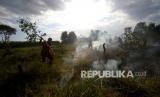 REPUBLIKA.CO.ID, BANJARBARU -- Petugas gabungan Manggala Agni dan Dinas Kehutanan kembali disibukkan oleh kebakaran lahan gambut di Kawasan Liang Anggang, Banjarbaru, Kalimantan Selatan, Kamis (27/8).