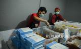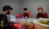 Relawan yang tergabung dalam Sekolah Relawan bersiap mendistribusikan makanan siap saji di Warung untuk Rakyat, Jalan Sulawesi, Beji, Depok, Jawa Barat. Jumat (28/8). Warung makan tersebut menyediakan makanan gratis bagi warga yang terdampak COVID-19 sebagai bentuk aksi sosial di tengah pandemi selain menyediakan makanan di tempat, para sukarelawan juga mendistribusikan makanan ke sejumlah rumah sakit, panti jompo, dan tempat-tempat umum lainnya. Dalam sehari Sekolah Relawan menyediakan 1.000 hingga 1.500 porsi makanan gratis hasil dari bantuan kolektif sejumlah donatur. (FOTO : Republika/Thoudy Badai)