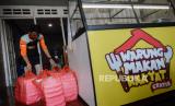 Warung untuk Rakyat yang didirikan oleh Sekolah Relawan menyediakan makanan secara gratis selama 24 jam di Jalan Sulawesi, Beji, Depok, Jawa Barat. Jumat (28/8). Warung makan tersebut menyediakan makanan gratis bagi warga yang terdampak COVID-19 sebagai bentuk aksi sosial di tengah pandemi selain menyediakan makanan di tempat, para sukarelawan juga mendistribusikan makanan ke sejumlah rumah sakit, panti jompo, dan tempat-tempat umum lainnya. Dalam sehari Sekolah Relawan menyediakan 1.000 hingga 1.500 porsi makanan gratis hasil dari bantuan kolektif sejumlah donatur. (FOTO : Republika/Thoudy Badai)