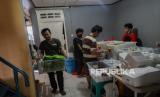 Relawan yang tergabung dalam Sekolah Relawan menyiapkan makanan siap saji di Warung untuk Rakyat, Jalan Sulawesi, Beji, Depok, Jawa Barat. Jumat (28/8). Warung makan tersebut menyediakan makanan gratis bagi warga yang terdampak COVID-19 sebagai bentuk aksi sosial di tengah pandemi selain menyediakan makanan di tempat, para sukarelawan juga mendistribusikan makanan ke sejumlah rumah sakit, panti jompo, dan tempat-tempat umum lainnya. Dalam sehari Sekolah Relawan menyediakan 1.000 hingga 1.500 porsi makanan gratis hasil dari bantuan kolektif sejumlah donatur. (FOTO : Republika/Thoudy Badai)