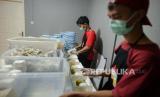 Nasi boks siap saji yang disediakan Sekolah Relawan di Warung untuk Rakyat, Jalan Sulawesi, Beji, Depok, Jawa Barat. Jumat (28/8). Warung makan tersebut menyediakan makanan gratis bagi warga yang terdampak COVID-19 sebagai bentuk aksi sosial di tengah pandemi selain menyediakan makanan di tempat, para sukarelawan juga mendistribusikan makanan ke sejumlah rumah sakit, panti jompo, dan tempat-tempat umum lainnya. Dalam sehari Sekolah Relawan menyediakan 1.000 hingga 1.500 porsi makanan gratis hasil dari bantuan kolektif sejumlah donatur. (FOTO : Republika/Thoudy Badai)