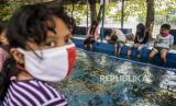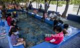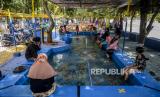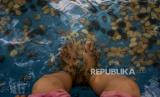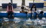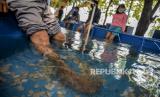 REPUBLIKA.CO.ID, JAKARTA -- Sejumlah warga saat melakukan terapi ikan di kawasan Setu Babakan, Jagakarsa, Jakarta, Sabtu (29/8).