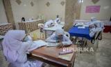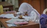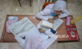 REPUBLIKA.CO.ID, JAKARTA -- Sejumlah siswa melakukan pembelajaran secara online atau daring di Posyandu RW 001 Kelurahan Galur, Johar Baru, Jakarta, Senin (31/8).