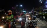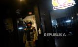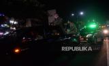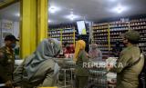 REPUBLIKA.CO.ID, DEPOK -- Anggota Sat Pol PP kota Depok menyosialisasi pemberlakuan Pembatasan Aktivitas Warga (PAW) di Kawasan Jalan Margonnda, Depok , Senin (31/8).