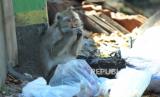 REPUBLIKA.CO.ID, BANDUNG BARAT -- Pasokan makanan yang terganggu di habitat alaminya, membuat monyet ekor panjang (Macaca Fascicularis) mengais sampah mencari makanan di pinggir jalan kawasan Curug Cimahi, Kecamatan Parongpong, Kabupaten Bandung Barat, Selasa (1/9).