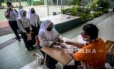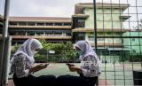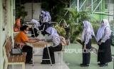Sejumlah pelajar saat melakukan registrasi nomor kartu perdana yang telah dibagikan di SMK Negeri 8 Jakarta, Kamis (3/9). Kementerian Pendidikan dan Kebudayaan mulai mendistribusikan subsidi kuota internet melalui kartu perdana yang akan diberikan kuota gratis setiap bulannya kepada pelajar, mahasiswa, guru dan dosen untuk memperlancar pembelajaran jarak jauh. Republika/Putra M. Akbar (FOTO : Republika/Putra M. Akbar)