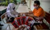 Sejumlah pelajar saat mengambil kartu perdana yang dibagikan di SMK Negeri 8 Jakarta, Kamis (3/9). Kementerian Pendidikan dan Kebudayaan mulai mendistribusikan subsidi kuota internet melalui kartu perdana yang akan diberikan kuota gratis setiap bulannya kepada pelajar, mahasiswa, guru dan dosen untuk memperlancar pembelajaran jarak jauh. Republika/Putra M. Akbar (FOTO : Republika/Putra M. Akbar)