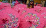 Perajin melukis payung geulis di halaman rumah di Lingkungan Panyingkiran, Kota Tasikmalaya, Jawa Barat, Kamis (3/9/2020). Perajin bisa memproduksi 1.000 payung geulis per bulan yang dijual Rp40 ribu hingga Rp2 juta per buah yang dipasarkan ke Jakarta, Jabar, Riau, Batam, Sulawesi hingga ke Malaysia. (FOTO : ANTARA/Adeng Bustomi)