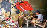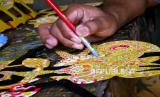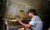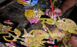 REPUBLIKA.CO.ID,YOGYAKARTA-- Pengrajin wayang Ristiyanto (42) menyungging wayang kulit di Bramantyo Kulit, Pucung, Imogiri, Bantul, Yogyakarta, Jumat (4/9).