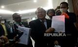 Mantan Menko Maritim Rizal Ramli bersama Pakar Hukum Tata Negara Refly Harun menunjukan berkas sebelum mendaftarkan pengajuan judicial review di Mahkamah Konstitusi, Jakata, Jumat (4/9). Rizal Ramli mengajukan judicial review UU pemilu terkait ambang batas pencalonan presiden karena dinilai telah membunuh demokrasi dan menciptakan oligarki kekuasaan.Prayogi/Republika (FOTO : Prayogi/Republika)