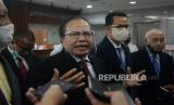 Mantan Menko Maritim Rizal Ramli memberikan keterangan usai mendaftarkan pengajuan judicial review di Mahkamah Konstitusi, Jakata, Jumat (4/9). Rizal Ramli mengajukan judicial review UU pemilu terkait ambang batas pencalonan presiden karena dinilai telah membunuh demokrasi dan menciptakan oligarki kekuasaan.Prayogi/Republika (FOTO : Prayogi/Republika)