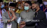 Bakal calon Bupati Bandung Dadang Supriatna (kiri) bersama bakal calon Wakil Bupati Sahrul Gunawan (tengah) tiba untuk menyerahkan berkas pendaftaran calon Bupati dan Wakil Bupati di Kantor KPU Kabupaten Bandung, Soreang, Kabupaten Bandung, Jumat (4/9). Komisi Pemilihan Umum (KPU) Kabupaten Bandung mulai membuka pendaftaran calon Bupati dan Wakil Bupati Bandung Pilkada Serentak 2020 hingga 6 September 2020. Foto: Abdan Syakura/Republika (FOTO : ABDAN SYAKURA/REPUBLIKA)