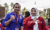 Bakal calon Bupati Bandung Yena Masoem bersama bakal calon Wakil Bupati Atep Rizal tiba untuk menyerahkan berkas pendaftaran calon Bupati dan Wakil Bupati di Kantor KPU Kabupaten Bandung, Soreang, Kabupaten Bandung, Jumat (4/9). Komisi Pemilihan Umum (KPU) Kabupaten Bandung mulai membuka pendaftaran calon Bupati dan Wakil Bupati Bandung Pilkada Serentak 2020 hingga 6 September 2020. Foto: Abdan Syakura/Republika (FOTO : ABDAN SYAKURA/REPUBLIKA)