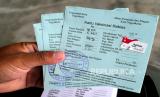 Dokter hewan dari Dinas Pertanian dan Pangan Kota Yogyakarta menunjukkan kartu vaksinasi rabies pada anjing warga saat Vaksinasi Rabies Tahap II di Kelurahan Gunungketur, Yogyakarta, Senin (7/9). Program ini diberikan secara gratis kepada warga Yogya. (FOTO : Wihdan Hidayat / Republika)