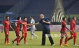 Pelatih timnas Indonesia Alfred Riedl menyalami para pemainnya seusai laga ujicoba melawan Suriah di Stadion Utama Gelora Bung Karno, Jakarta, Sabtu (15/11/2014). (FOTO : Republika/Edwin Dwi Putranto)