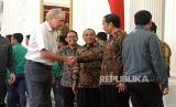 Pelatih Timnas Sepakbola Indonesia Alfred Riedl bersalaman dengan Presiden Joko Widodo di Istana Merdeka, Jakarta, Senin (19/12). Timnas Sepakbola Indonesia diundang ke Istana Merdeka seusai menjadi runner up AFF 2016. (FOTO : Republika/ Wihdan Hidayat)
