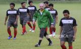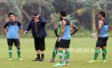 Pelatih Timnas Senior Alfred Riedl (dua kiri) memberikan instruksi kepada pemain pada latihan perdana di Lapangan UPH Karawaci, Tangerang, Banten, Rabu (26/2). (FOTO : ANTARA FOTO/Muhammad Iqbal)