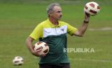 Pelatih timnas Indonesia Alfred Riedl memimpin latihan para pemain asuhannya jelang pertandingan babak final AFF Suzuki Cup 2010 melawan Malaysia di Lapangan Timnas Senayan, Jakarta, Senin (20/12/2010). (FOTO : ANTARA/Andika Wahyu)