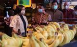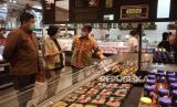 Chief Executive Officer PT Supra Boga Lestari Meshvara Kanjaya (kiri), Chief Executive Officer PT Lippo Malls Indonesia, Eddy Mumin (kedua kiri) dan perwakilan Lippo Grup Henry Riady (ketiga kiri) berbincang saat meninjau gerai Ranch Market usai acara penandatanganan nota kesepakatan bersama kedua belah pihak, di Jakarta, Selasa (8/9). (FOTO : Republika/Darmawan)
