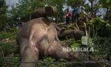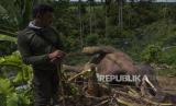 REPUBLIKA.CO.ID, PIDIE -- Petugas mengamati bangkai Gajah sumatra (Elephas maximus sumatrensis) yang ditemukan mati di kebun milik warga di Desa Tuha Lala, Kecamatan Mila, Kabupaten Pidie, Aceh, Rabu (9/9/2020).