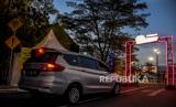 Petugas menyemprotkan cairan disinfektan kepada mobil pengunjung sebelum memasuki area Drive In Senja di Kiara Artha Park, Jalan Banten, Kota Bandung, Rabu (9/9). Bioskop berkonsep Drive-In yang diinisiasi Katarsis Live dengan mewajibkan penonton menyaksikan film dari dalam mobil sebagai protokol kesehatan itu dalam rangka membangkitkan ekonomi kreatif khususnya hiburan di tengah pandemi Covid-19. Foto: Abdan Syakura/Republika (FOTO : ABDAN SYAKURA/REPUBLIKA)