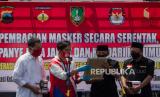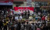 REPUBLIKA.CO.ID, SOLO -- Kedua pasangan bakal Calon Wali Kota dan Wakil Wali Kota Solo Gibran Rakabuming Raka-Teguh Prakosa dan Bagyo Wahyono-FX Supardjo membacakan deklarasi Pilkada damai dan pembagian masker gratis di Pasar Gede, Solo, Jawa Tengah, Kamis (10/9/2020).
