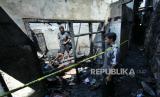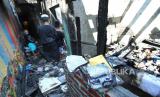 Warga melihat bangunan yang hangus dalam peristiwa kebakaran di RT 8, RW 3, Jalan Djunjunan Dalam, Kelurahan Pajajaran, Kecamatan Cicendo, Kota Bandung, Kamis (10/9). Peristiwa yang terjadi Rabu (9/9) itu, menghanguskan delapan rumah. Kebakaran diduga akibat arus pendek listrik. (FOTO : Edi Yusuf/Republika)