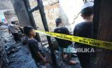 Sejumlah anak melihat bangunan yang hangus dalam peristiwa kebakaran di RT 8, RW 3, Jalan Djunjunan Dalam, Kelurahan Pajajaran, Kecamatan Cicendo, Kota Bandung, Kamis (10/9). Peristiwa yang terjadi Rabu (9/9) itu, menghanguskan delapan rumah. Kebakaran diduga akibat arus pendek listrik. (FOTO : Edi Yusuf/Republika)