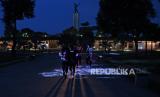 Sejumlah warga berfoto di lapangan Banteng, Jakarta, Kamis (10/9/2020). Pemprov DKI Jakarta akan kembali menutup ruang publik pada Senin (14/9/2020) untuk mencegah kerumunan saat pemberlakuan kembali PSBB total guna menekan penyebaran COVID-19.  (FOTO : ANTARA/Wahyu Putro A)