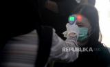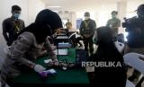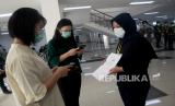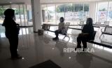 Relawan tenaga kesehatan mengikuti simulasi penerimaan pasien di Tower 5 Rumah Sakit Darurat (RSD) wisma atlet, Kemayoran, Jakarta, Jumat (11/9). Rencananya tower 5 di RSD wisma atlet akan segera dibuka untuk pasien positif Covid-19 tanpa gejala untuk melakukan isolasi mandiri. Tower 5 ini berkapasitas sebanyak 886 kamar atau sekitar 1.772 tempat tidur.Prayogi/Republika. (FOTO : Prayogi/Republika)