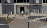 Tenaga kesehatan dengan mengenakan APD berjalan keluar dari salah satu tower di kawasan Rumah Sakit Darurat (RSD) wisma atlet, Kemayoran, Jakarta, Jumat (11/9). Rencananya tower 5 di RSD wisma atlet akan segera dibuka untuk pasien positif Covid-19 tanpa gejala untuk melakukan isolasi mandiri. Tower 5 ini berkapasitas sebanyak 886 kamar atau sekitar 1.772 tempat tidur.Prayogi/Republika. (FOTO : Prayogi/Republika)