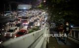 Sejumlah kendaraan terjebak macet saat jam pulang kerja di Jalan Gatot Subroto, Jakarta, Jumat (11/9). Gubernur DKI Jakarta Anies Baswedan mewajibkan sebagian besar perkantoran non-esensial untuk melakukan pekerjaan di rumah atau work from home berlaku saat pembatasan sosial berskala besar (PSBB) secara total pada 14 September 2020 mendatang. Republika/Thoudy Badai (FOTO : Republika/Thoudy Badai)