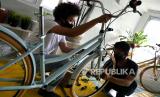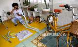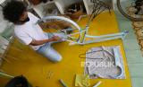 Proses perakitan sepeda klasik city bike di bengkel Swasepeda, Prawirodirjan, Gondomanan, Yogyakarta, Sabtu (12/9). (FOTO : Wihdan Hidayat / Republika)