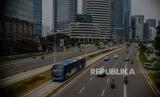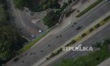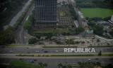REPUBLIKA.CO.ID, JAKARTA -- Suasana lalu lintas yang lengang pada hari pertama pembatasan sosial berskala besar (PSBB) secara total di kawasan Sudirman, Jakarta, Senin (14/9).