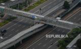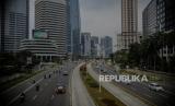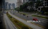 Suasana lalu lintas yang lengang pada hari pertama pembatasan sosial berskala besar (PSBB) secara total di kawasan Sudirman, Jakarta, Senin (14/9). Pemerintah provinsi DKI Jakarta memberlakukan masa pembatasan sosial berskala besar (PSBB) jilid dua mulai hari Senin (14/9) selama dua minggu hingga (27/9) dengan target pembatasan di lingkungan perkantoran. Republika/Thoudy Badai (FOTO : Republika/Thoudy Badai)