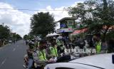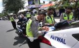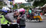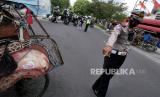REPUBLIKA.CO.ID, YOGYAKARTA -- Aparat kepolisian menggelar operasi pelanggar rambu di Selatan Pasar Beringharjo, Yogyakarta, Senin (14/9).