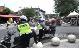 Aparat kepolisian menggelar operasi pelanggar rambu di Selatan Pasar Beringharjo, Yogyakarta, Senin (14/9). Operasi dari Polresta Yogyakarta ini untuk menindak pelanggar rambu jalan searah yang marak terjadi. Selain itu, juga mengingatkan ke pengendara untuk mematuhi protokol kesehatan Covid-19. (FOTO : Wihdan Hidayat / Republika)