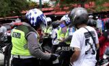 Aparat kepolisian menilang pelanggar rambu di Selatan Pasar Beringharjo, Yogyakarta, Senin (14/9). Operasi dari Polresta Yogyakarta ini untuk menindak pelanggar rambu jalan searah yang marak terjadi. Selain itu, juga mengingatkan ke pengendara untuk mematuhi protokol kesehatan Covid-19. (FOTO : Wihdan Hidayat / Republika)
