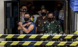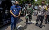 Gubernur Jawa Barat Ridwan Kamil (kiri) bersama Kapolda Jabar Irjen Rudy Sufahriadi (kanan) dan Pangdam III/Siliwangi Mayjen TNI Nugroho Budi Wiryanto (tengah) tiba untuk menjalani uji klinis fase tiga vaksin Covid-19 di Puskesmas Garuda, Jalan Dadali, Kota Bandung, Senin (14/9). Gubernur Jawa Barat Ridwan Kamil bersama Kapolda Jabar Irjen Rudy Sufahriadi, Pangdam III/Siliwangi Mayjen TNI Nugroho Budi Wiryanto dan Kepala Kejati Jabar Ade Eddy Adhyaksa menjalani penyuntikan kedua sebagai relawan uji klinis fase tiga vaksin Covid-19. Foto: Abdan Syakura/Republika (FOTO : ABDAN SYAKURA/REPUBLIKA)