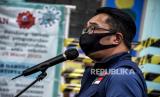 Gubernur Jawa Barat Ridwan Kamil memberikan keterangan pers usai menjalani uji klinis fase tiga vaksin Covid-19 di Puskesmas Garuda, Jalan Dadali, Kota Bandung, Senin (14/9). Gubernur Jawa Barat Ridwan Kamil bersama Kapolda Jabar Irjen Rudy Sufahriadi, Pangdam III/Siliwangi Mayjen TNI Nugroho Budi Wiryanto dan Kepala Kejati Jabar Ade Eddy Adhyaksa menjalani penyuntikan kedua sebagai relawan uji klinis fase tiga vaksin Covid-19. Foto: Abdan Syakura/Republika (FOTO : ABDAN SYAKURA/REPUBLIKA)