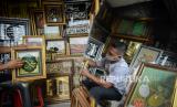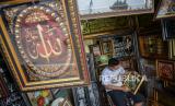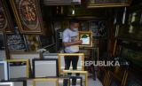 REPUBLIKA.CO.ID, JAKARTA -- Penjual kaligrafi Roni (32) menata kerajinan pigura dan kaligrafi di gerainya di kawasan Pasar Minggu, Jakarta, Selasa (15/9).