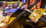 Pekerja beraktivitas saat simulasi pembukaan dan peninjauan tempat bermain dalam ruangan di Timezone Bandung Indah Plaza, Jalan Merdeka, Kota Bandung, Selasa (15/9). Simulasi tersebut dilakukan dalam rangka peninjauan kesiapan tempat bermain dalam penerapan protokol kesehatan seperti penggunaan alat pelindung wajah bagi karyawan, pembatas jaga jarak, masker, sarung tangan dan cairan disinfektan seiring tatanan Adaptasi Kebiasaan Baru (AKB) di tengah pandemi Covid-19. Foto: Abdan Syakura/Republika (FOTO : ABDAN SYAKURA/REPUBLIKA)