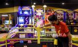 REPUBLIKA.CO.ID, BANDUNG -- Pekerja beraktivitas saat simulasi pembukaan dan peninjauan tempat bermain dalam ruangan di Timezone Bandung Indah Plaza, Jalan Merdeka, Kota Bandung, Selasa (15/9).
