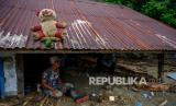 Warga berada di rumahnya yang tertimbun lumpur akibat banjir bandang di Desa Rogo, Kecamatan Dolo Selatan, Kabupaten Sigi, Sulawesi Tengah, Selasa (15/9/2020). Banjir bandang yang terjadi pada Senin (14/9/2020) malam karena hujan lebat itu mengakibatkan sedikitnya 15 rumah warga rusak berat dan puluhan lainnya rusak ringan dan digenangi lumpur. Sebanyak 59 Kepala Keluarga atau atau 224 jiwa terpaksa mengungsi ke tempat aman. (FOTO : Antara/Basri Marzuki)
