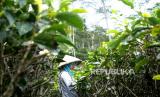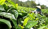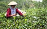 Petani memetik teh di Perkebunan Teh Nglinggo, Kulonprogo, Yogyakarta, Selasa (16/9). Selain penghasil teh, kawasan perkebunan teh Nglinggo menjadi destinasi wisata. Setiap akhir pekan wisatawan memadati perkebunan teh satu-satunya di Yogyakarta. Teh Gambung menjadi andalan di sini, banyak digemari wisatawan mancanegara. Terkadang ada juga wisatawan atau akademisi yang melakukan penelitian di sini. (FOTO : Wihdan Hidayat / Republika)