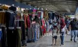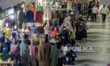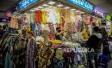 Warga saat melihat-lihat busana yang dijual di Pasar Tanah Abang, Jakarta, Rabu (16/9). Pada PSBB kali ini, Pemerintah Provinsi DKI Jakarta tetap memberikan izin pasar atau kawasan niaga untuk beroperasi dengan tetap menerapkan protokol kesehatan yang ketat. Republika/Putra M. Akbar (FOTO : Republika/Putra M. Akbar)