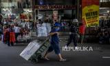 Kuli panggul saat beraktivitas di Pasar Tanah Abang, Jakarta, Rabu (16/9). Pada PSBB kali ini, Pemerintah Provinsi DKI Jakarta tetap memberikan izin pasar atau kawasan niaga untuk beroperasi dengan tetap menerapkan protokol kesehatan yang ketat. Republika/Putra M. Akbar (FOTO : Republika/Putra M. Akbar)