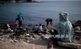 Pengungsi kamp Moria terlihat di pantai dekat kamp sementara di pulau Lesbos, Yunani, 15 September 2020. (FOTO : REUTERS/Alkis Konstantinidis )