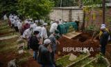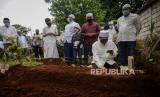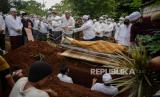 Suasana pemakaman wartawan senior Republika Habib Alwi Saleh Shahab di Tempat Pemakaman Umum Kober, Condet, Jakarta Timur, Kamis (17/9). Wartawan senior Republika sekaligus sejarawan betawi meninggal dunia pada 17 September 2020 pukul 03.00 WIB di kediamannya saat menginjak usia 84 tahun. Republika/Thoudy Badai (FOTO : Republika/Thoudy Badai)